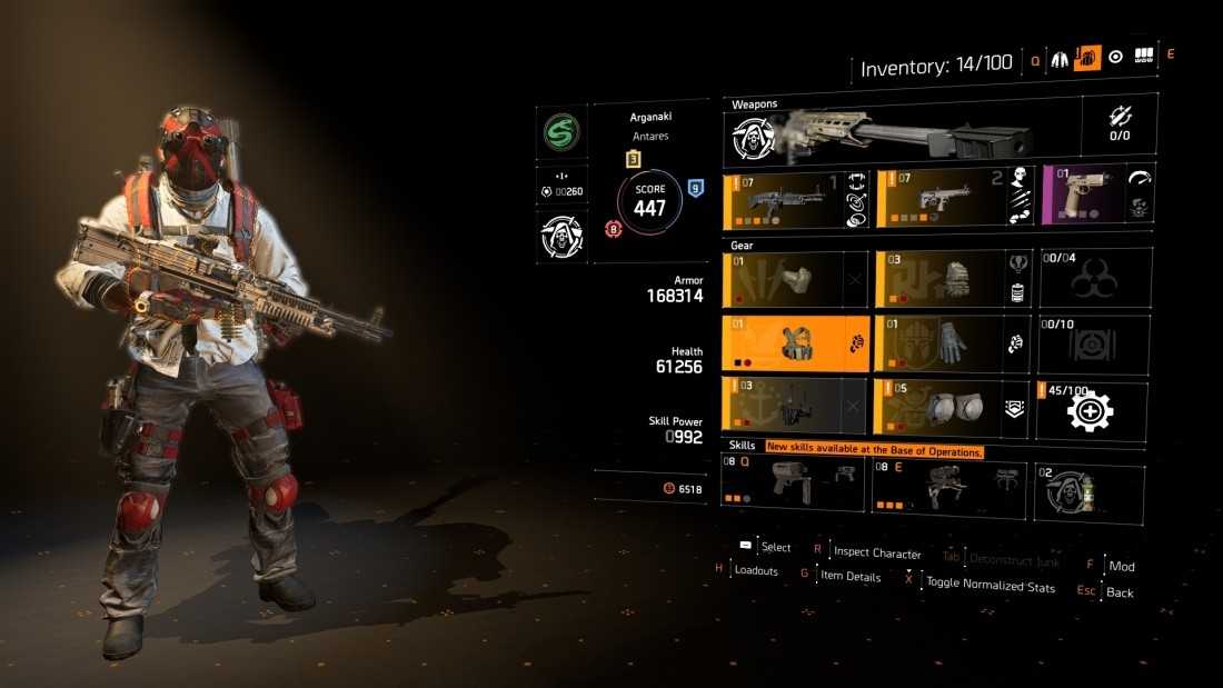 Совет может показаться очевидным, но все же мы крайне не рекомендуем выбирать оружие исходя из показателей урона. Да, огневая сила крайне важна в игре, где даже на рядового противника может уйти пол рожка патронов, но дополнительно советуем учитывать показатели скорострельности, скорости перезарядки и стабильности. Также рекомендуем после открытия двух слотов оружия выбрать ствол для близких и дальних атак, чтобы подготовить себя к любым ситуациям на поле боя. На финальных же этапах игры лучшим оружием в The Division 2 будет пулемет Military M60 E4. Мало того, что он восстанавливает броню при убийстве, так еще после установки модификаций на критический урон становится настоящей машиной для убийств.