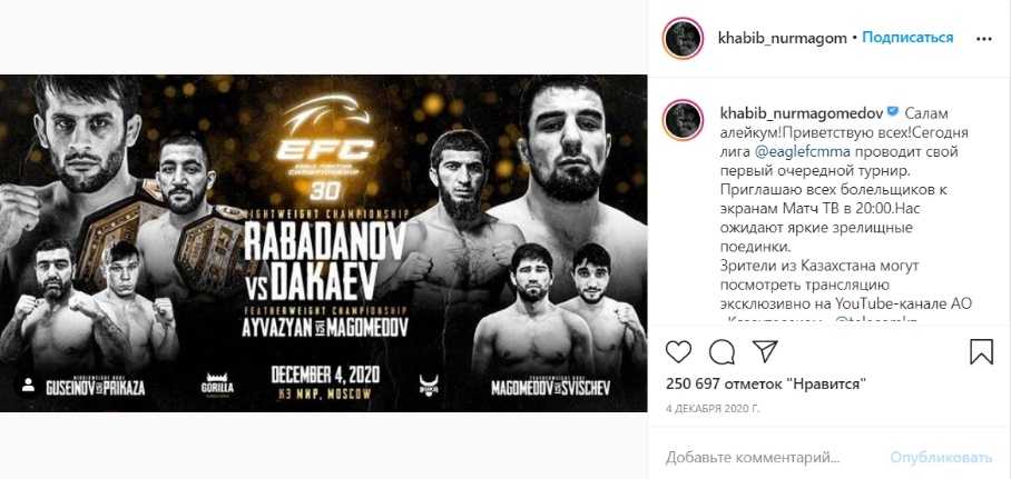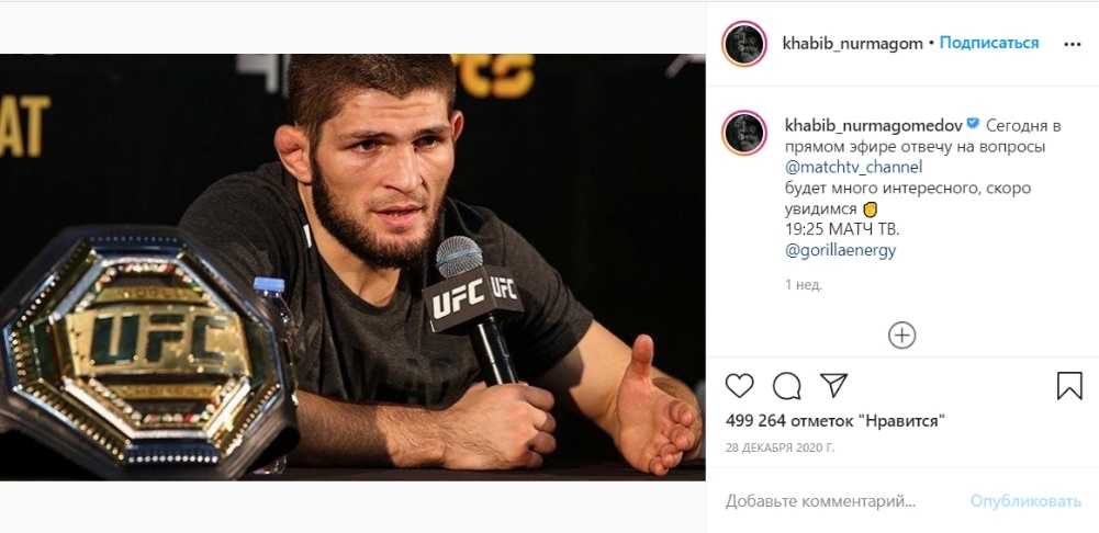Важно! Сотрудничество с UFC Хабиб официально не прерывал, соответственно, можно предположить, что между компанией и спортсменом был подписан рекламный контракт