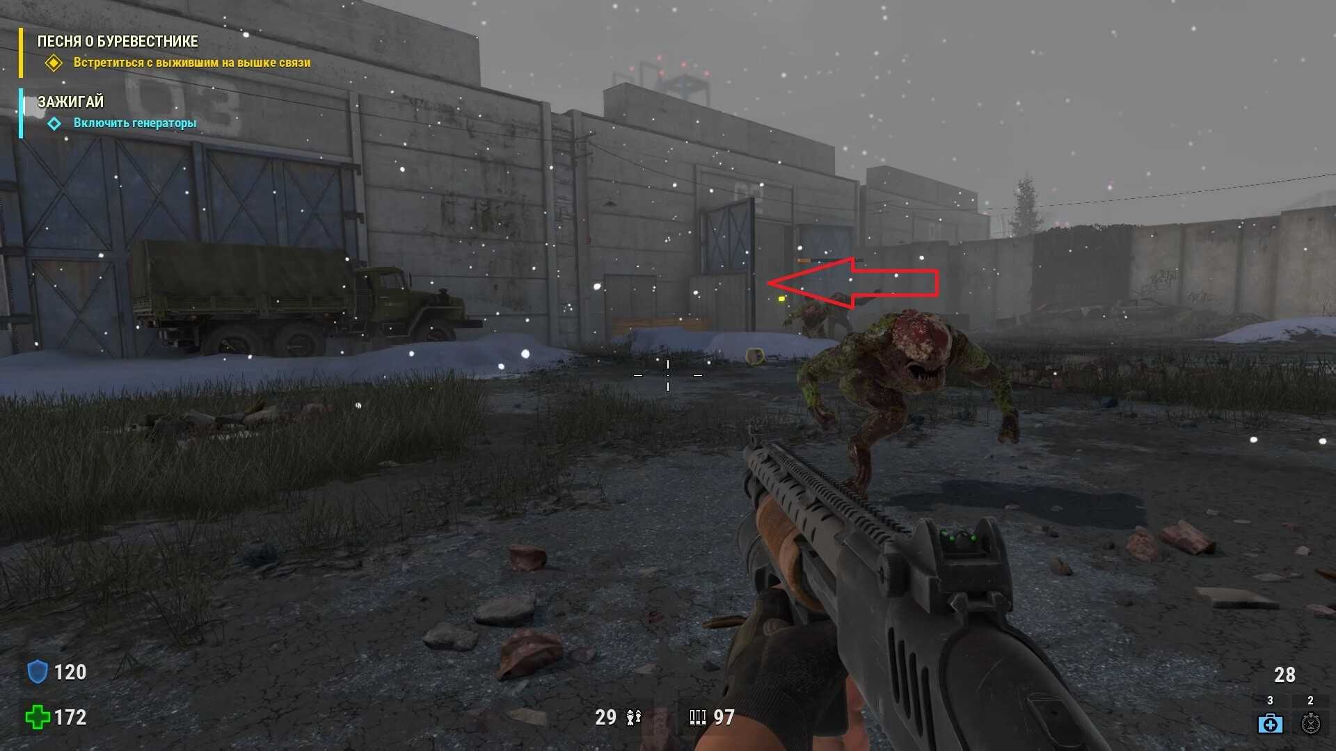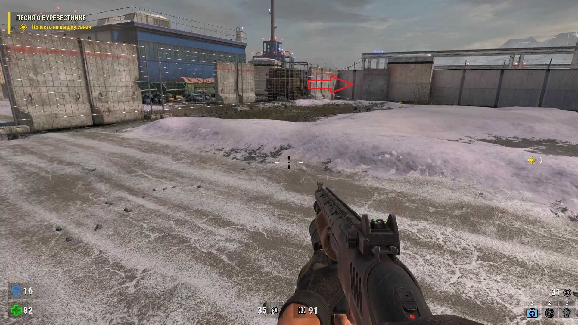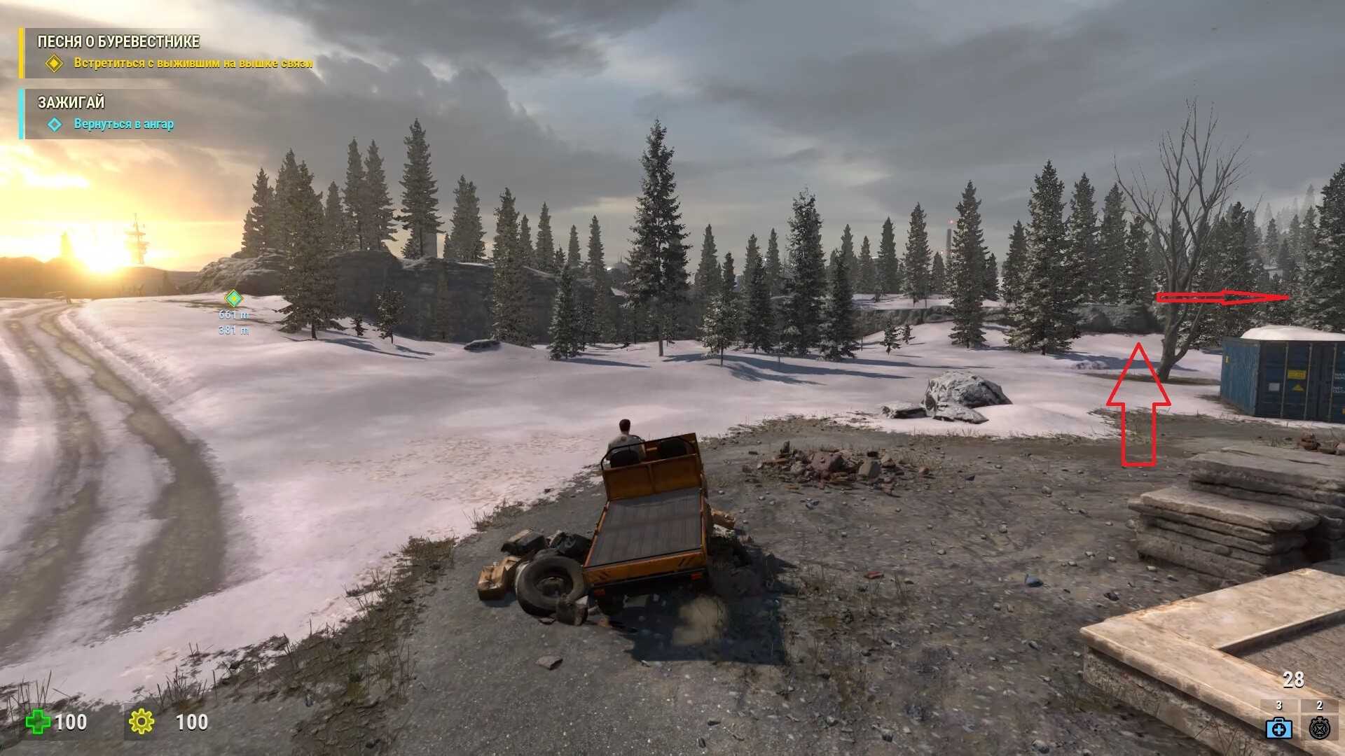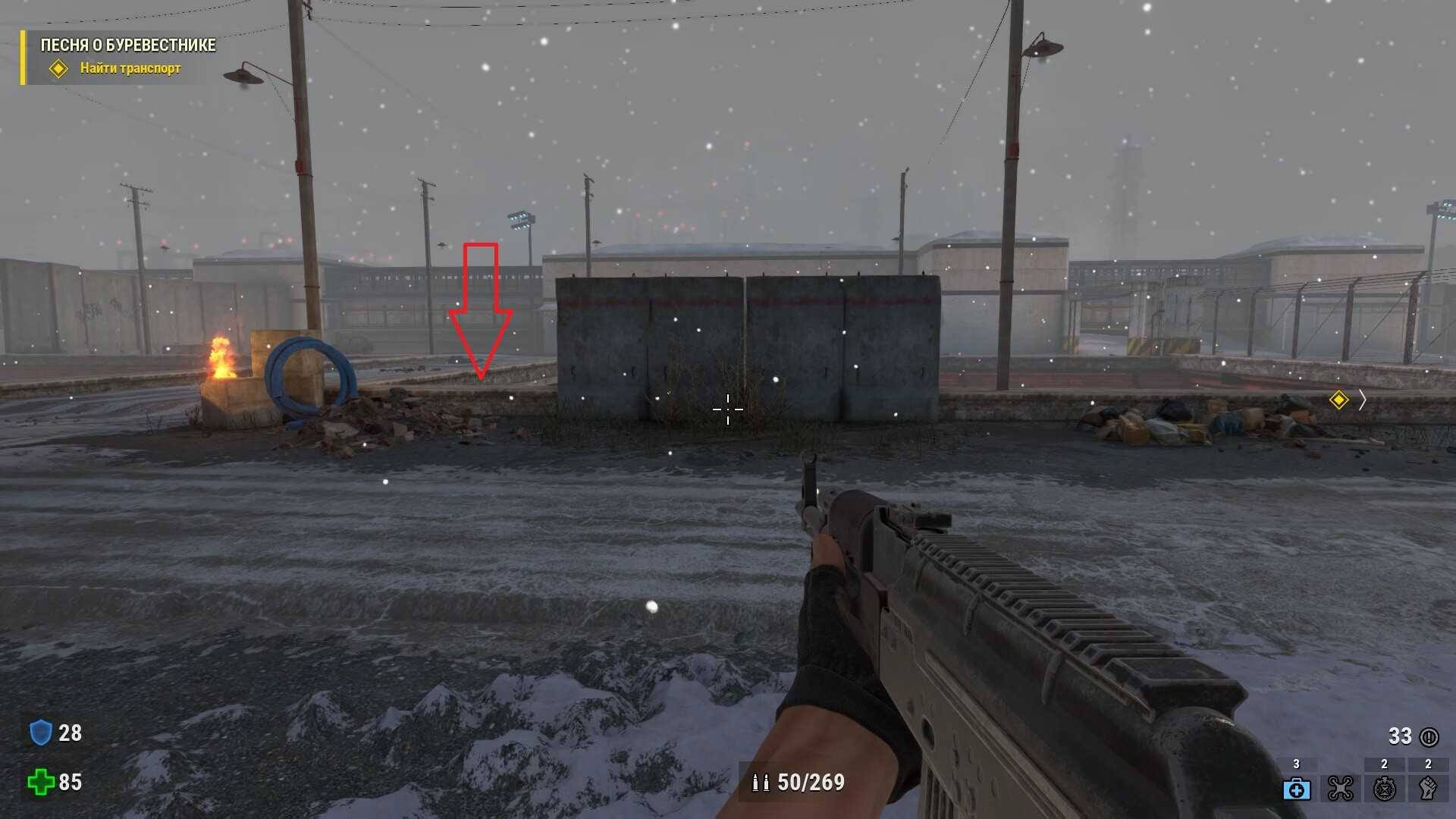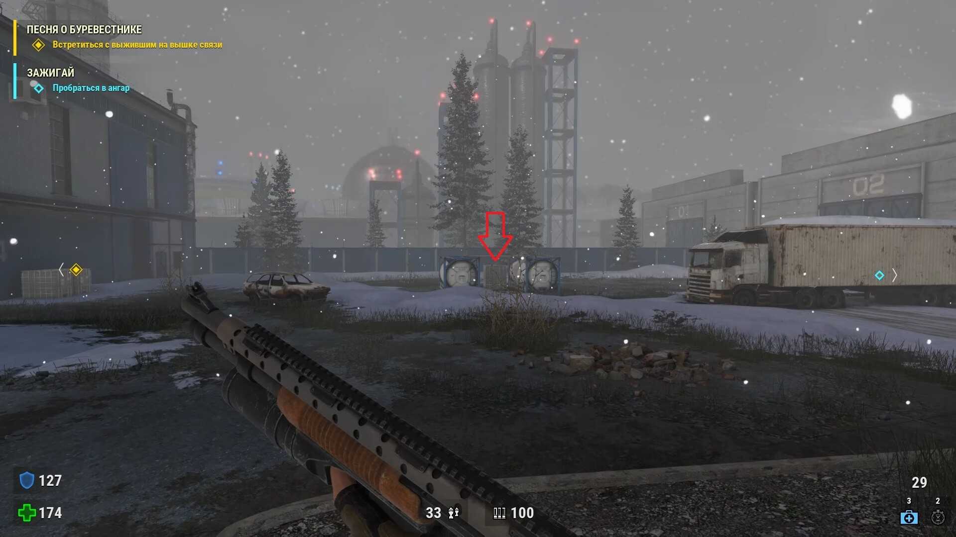 - Наконец, когда окажетесь на огромной раздельной станции с множеством рельс, идите в дальний левый угол и ищите за зданием тайник боеприпасов.