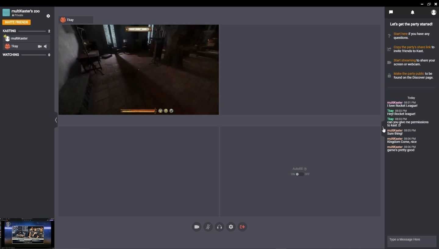 Принцип работы простой: один из участников просмотра создает комнату — публичную или приватную — и выбирает контент, который будет транслировать. В Kast есть возможность воспроизводить не только конкретные странички браузера, но и захватывать изображение из некоторых других приложений (видеоплееров среди них нет, зато есть веб-камера).