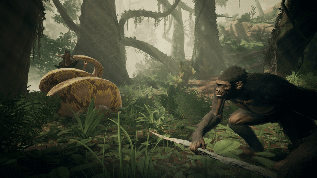 В первые мгновения игроки берут под свой контроль молодую обезьяну, которая просто наблюдала, как ее воспитатель (возможно, родитель, мы действительно не знаем) злобно разрывается хищником. Джунгли-это большое страшное место, и предки отлично справляются с этим со звуками и атмосферой, когда страх и адреналин берут верх.