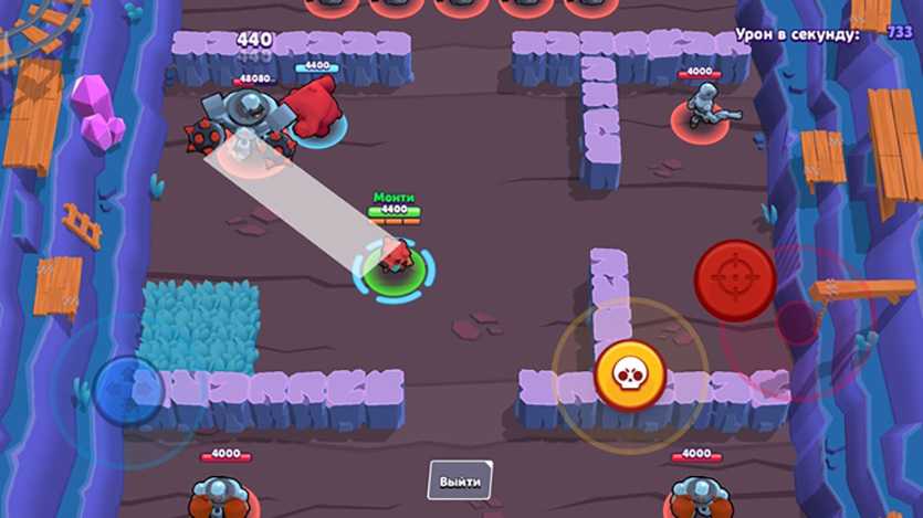 В игре два вида атаки – обычная и супер. Для обеих доступен автоматический и ручной режим. В автоматическом режиме нужно просто тапнуть по соответствующей кнопке, и боец сам прицелится и выстрелит в ближайшего врага. Это проще, но гораздо менее эффективно. А если кнопку зажать, можно прицелиться самостоятельно, и ваш огонь станет гораздо смертоноснее.