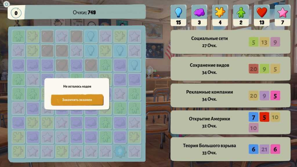 - Не тратьте сразу все ходы, перед выбором ответов оставьте в запасе ходов 5, чтобы при необходимости добрать клеток недостающего цвета.