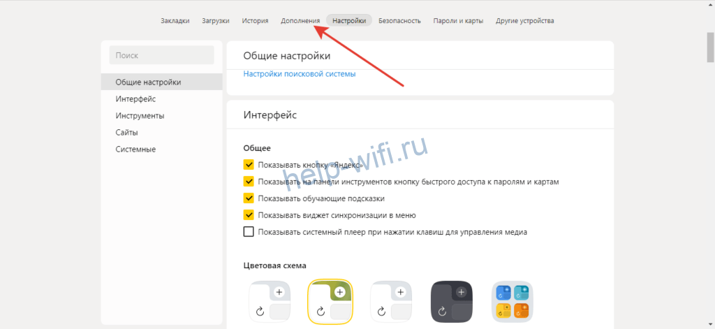 Запустите браузер, войдите в настройки и откройте вкладку «Дополнения».