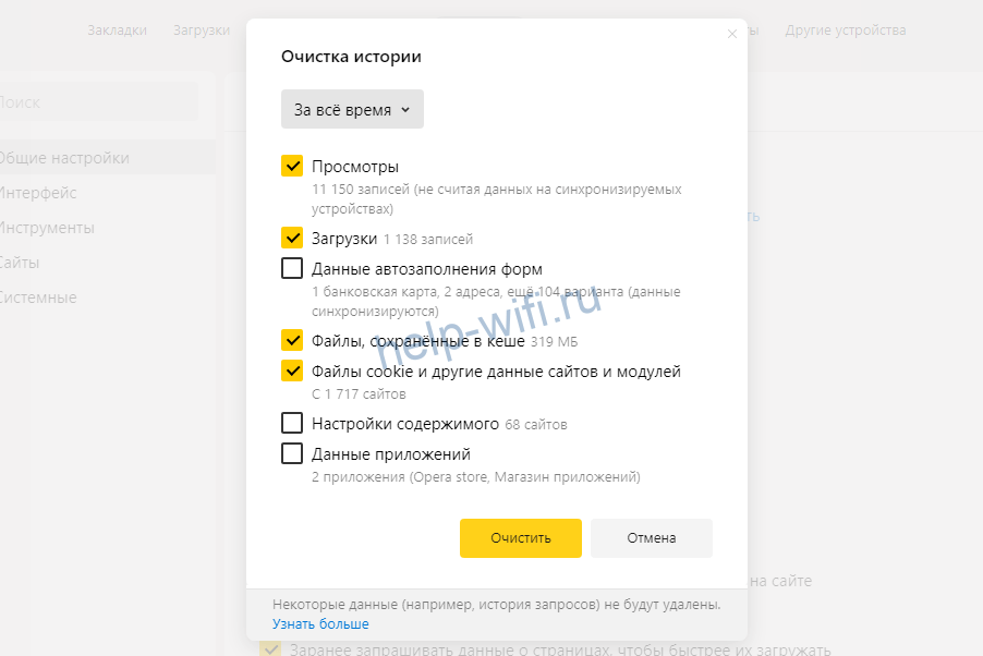 Переполненный кэш – частая причина проблем в работе браузера. При этом сброс кэша в Windows, описанный выше, не поможет. У обозревателя своё хранилище данных, которое мы и будем чистить. Запустите Яндекс.браузер и нажмите на клавиатуре одновременно кнопки Ctrl+Shift+Del. Появится окно очистки истории.