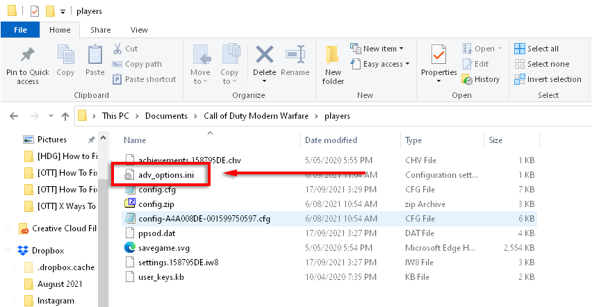 -Перейдите к C: \ Users \ \ Documents \ Call of Duty Modern Warfare \