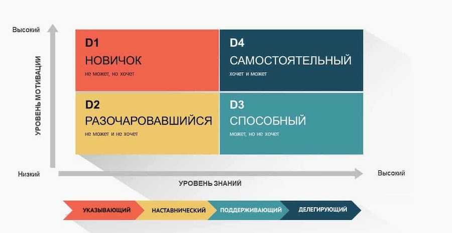 Таблица соответствия стилей управления с уровнем развития и мотивации сотрудников