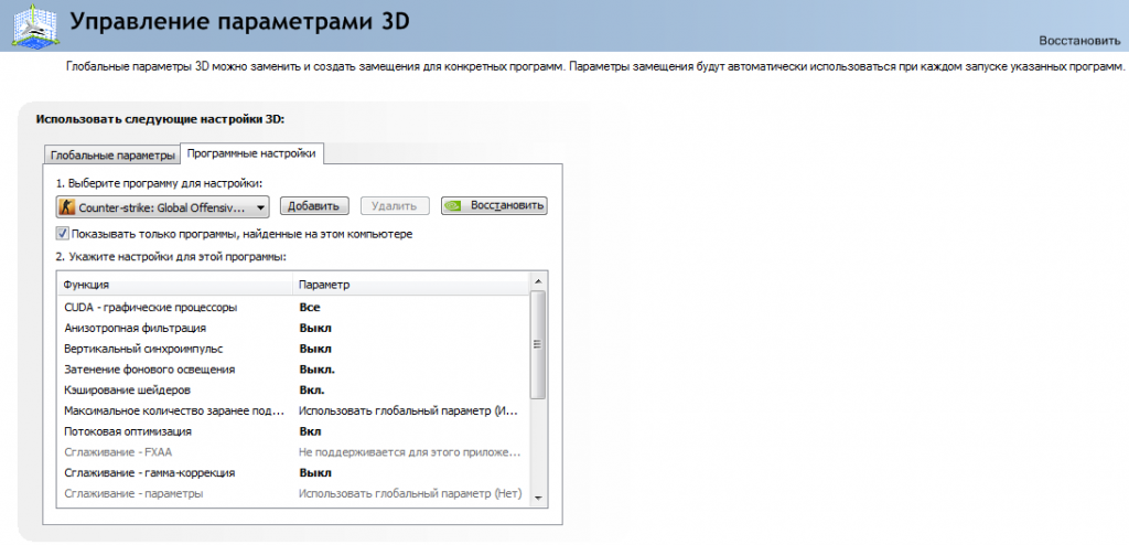 - В окне выбора программы выбираем игру Counter-Strike: Global Offensive.