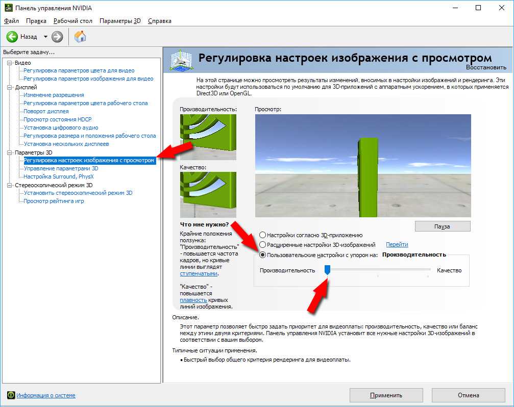 - Выставляем значение “Пользовательские настройки с упором на Производительность“.