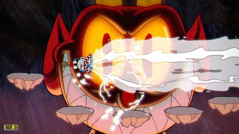 У вас будет пять платформ, прямо перед гигантским лицом дьявола. С этого момента гигантский пылающий покерный фишка упадет с неба и приземлится на случайную платформу. Не получить удар. Помимо чипа, у Дьявола есть только две атаки.
