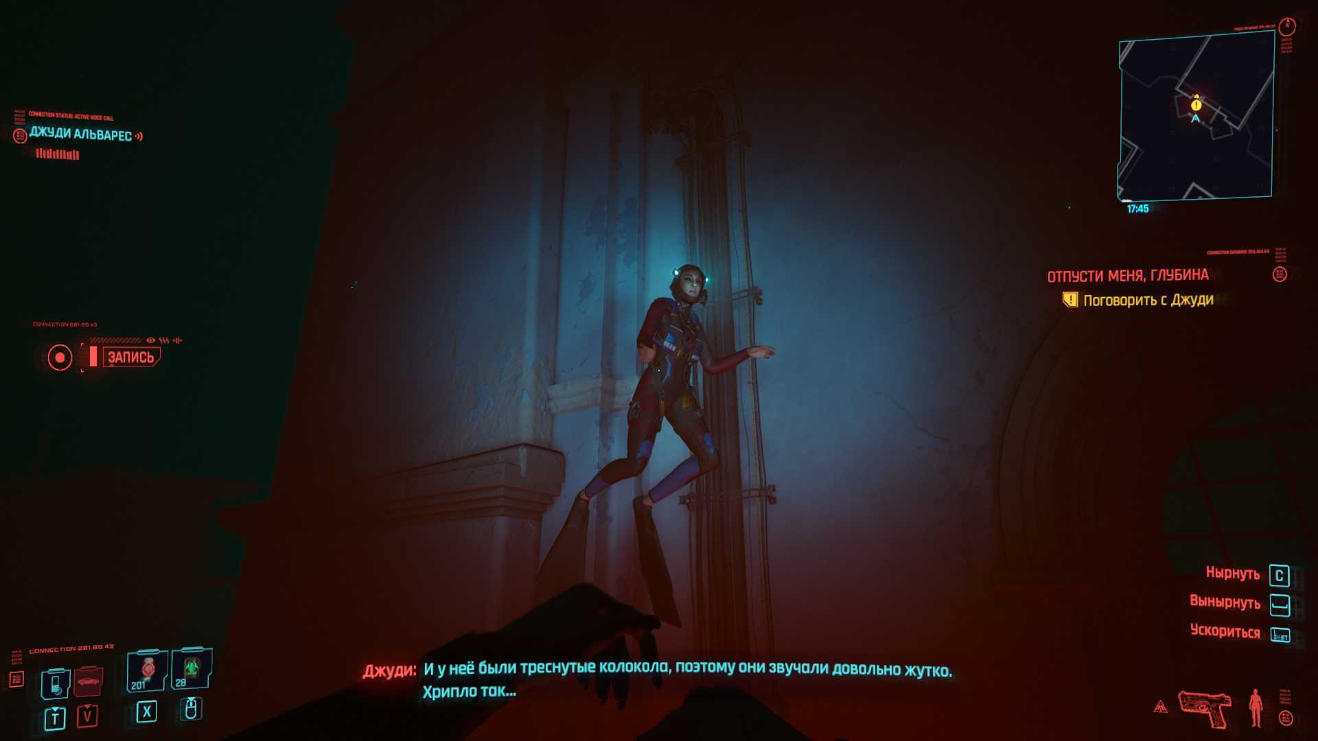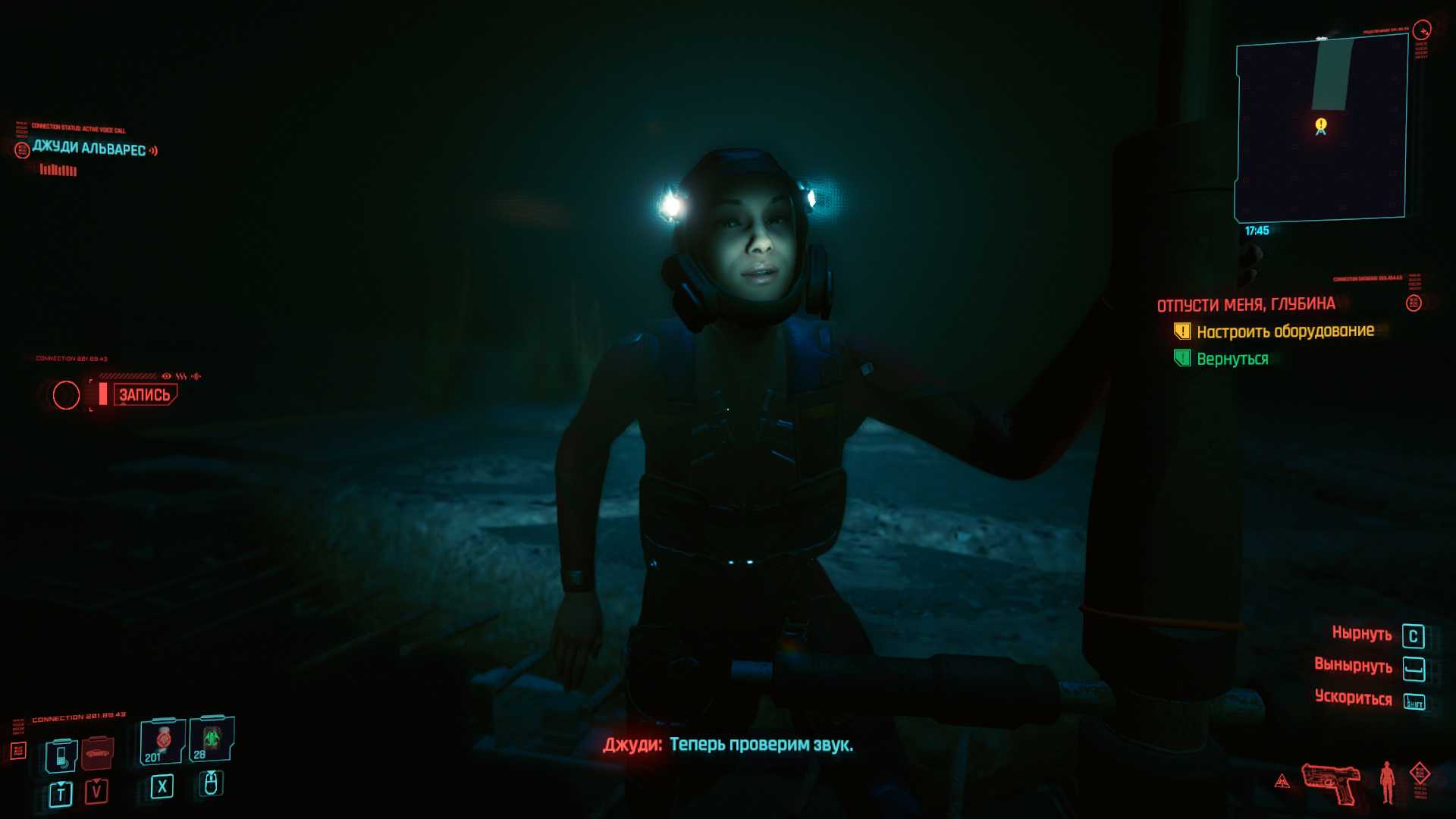 Джонни идею не оценит – он не хочет погружаться туда, где темно и мрачно. Надевайте специальный костюм и погружайтесь в воду. Параллельно она записывает вирт, так что под водой придется потратить время на настройку оборудования. Нужно выполнить ее простые просьбы – отплыть и проверить звук.