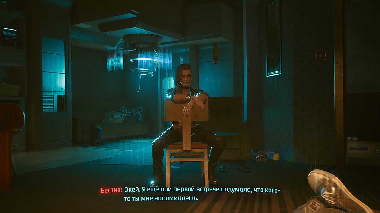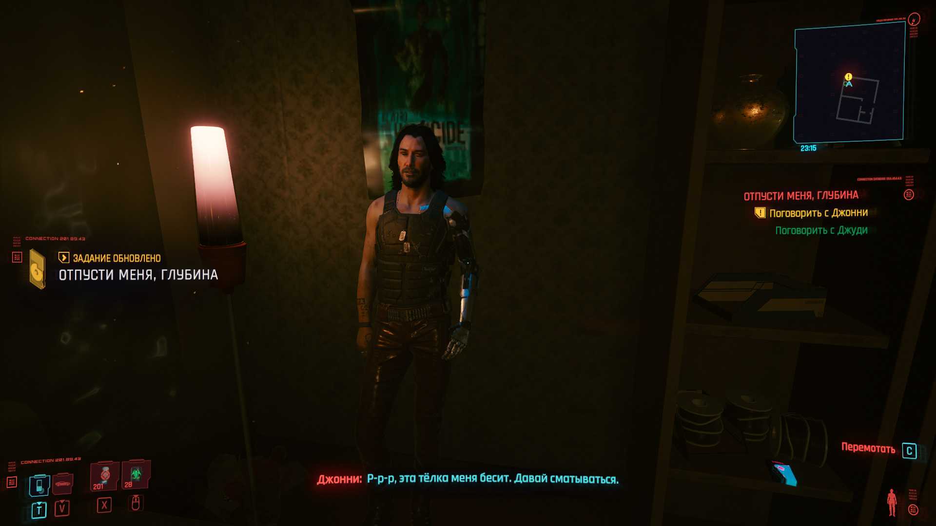 Когда вы впервые позволяете Джонни перехватить сознание Ви, и он отрывается в клубе «Посмертие», в одной из сцен можно увидеть угрожающего вида человека в черном пальто, который предлагает Джонни синюю или красную таблетку. Это тоже очевидная отсылка к «Матрице», одному из наиболее значительных фильмов Киану Ривза как актера, наряду с вышеупомянутым «Джоном Уиком».