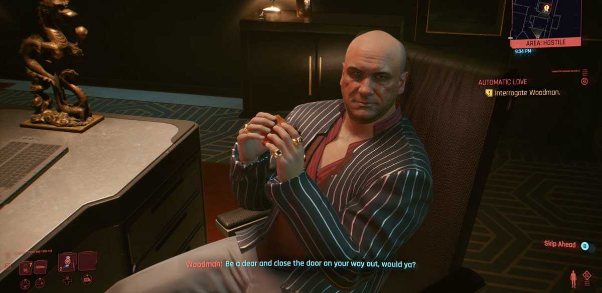 После снятия стресса и воодушевляющего телефонного звонка Джеки и вы оказываетесь в величественной башне Арасака в Найт-Сити. Вам поручено встретиться с вашим старшим агентом, мистером Дженкинсом. Но здесь нет спешки, поэтому вы можете посмотреть налево и направо и все осмыслить.