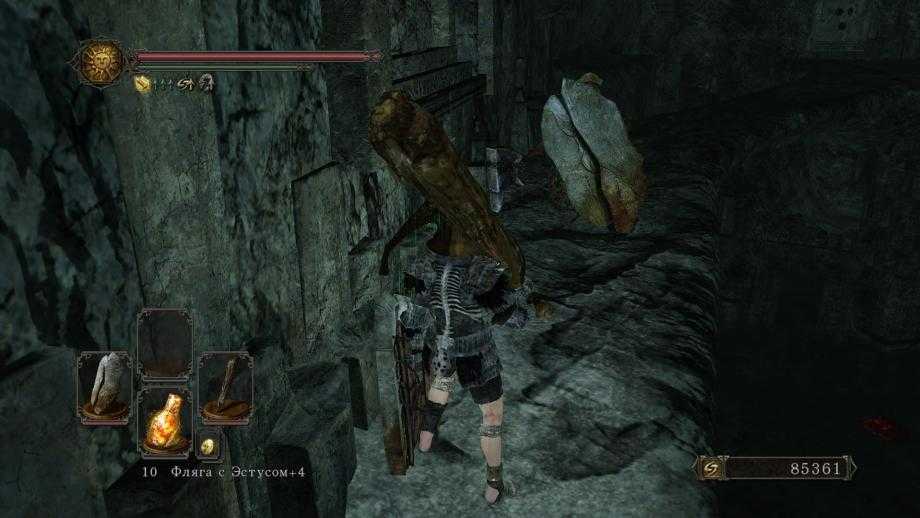 Любимый срез всех спидраннеров DS II – стена рядом с торговкой Мелентией. О том, что она взрывается, знают все игроки, но вот что взорвать ее можно с двух сторон знают немногие. Для этого можно купить бомбы у самой Мелентии, подойти к стене под нужным углом и вплотную кинуть бомбу.