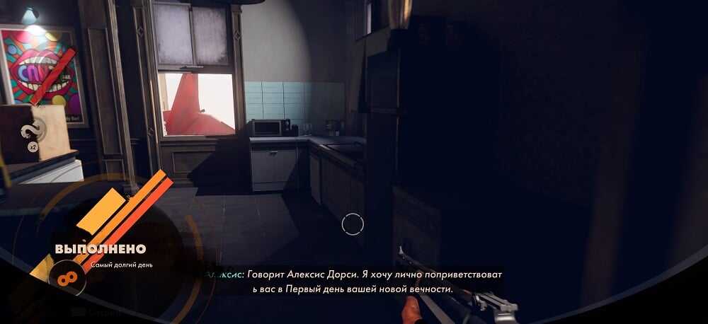 Мало того, что я изможденный жестокими стычками и несколько раз наступивший на мину-растяжку (да, я бываю невнимателен) едва-едва уносил ноги с добытым оружием и слитками, так еще и непрошенная гостья доставляла проблем. В игре полностью отсутствует регулировка уровня сложности и добавление ультимативного элемента в виде кровожадного живого игрока делает все еще хуже. Мне не хватило времени попробовать свои силы на стороне Джулианны, однако с точки зрения Кольта я остался разочарован. И это, пожалуй, моя единственная претензия к Deathloop. Если будет совсем тяжко, переведите игру в одиночный режим, Джулианна будет приходить в виде прокаченного бота. Но так она хотя бы предсказуема и ее легче убить.