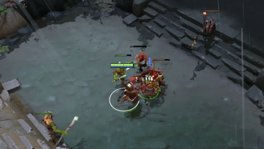 Кроме того, автоатачить крипов может быть вредно для здоровья. Если ваш герой выйдет вперед своих воинов, то все удары вражеской армии будут сыпаться прямо на его шею. Так вы быстро останетесь без здоровья, и придется бежать прямиком к своему фонтану, чтобы подлечиться.