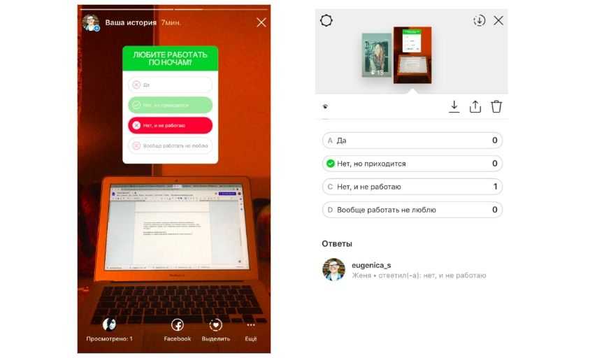 Чтобы посмотреть ответы на свой тест, смахните сторис с тестом снизу вверх. В появившейся статистике будет собрана информация по ответам каждого пользователя, а также по суммарному количеству проголосовавших за каждый из пунктов вашего теста.