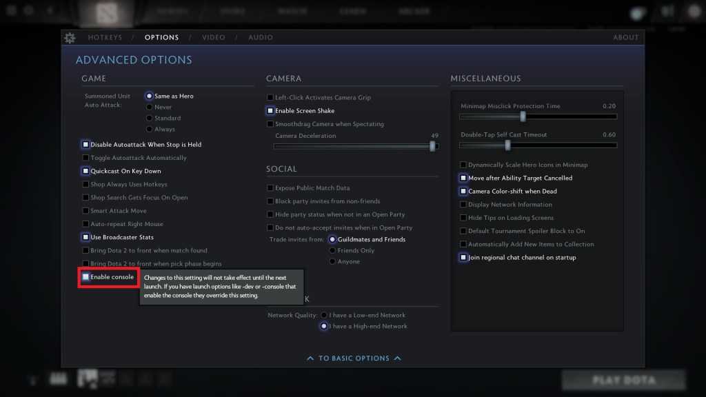 Если вам недостаточно, чтобы камера фиксировалась только на вашем герое, когда вы нажимаете клавишу пробела, эта следующая опция будет иметь блокировку переключения камеры на вашем герое. Это изначально не реализовано в Dota 2 и должно быть создано с помощью консольных команд.