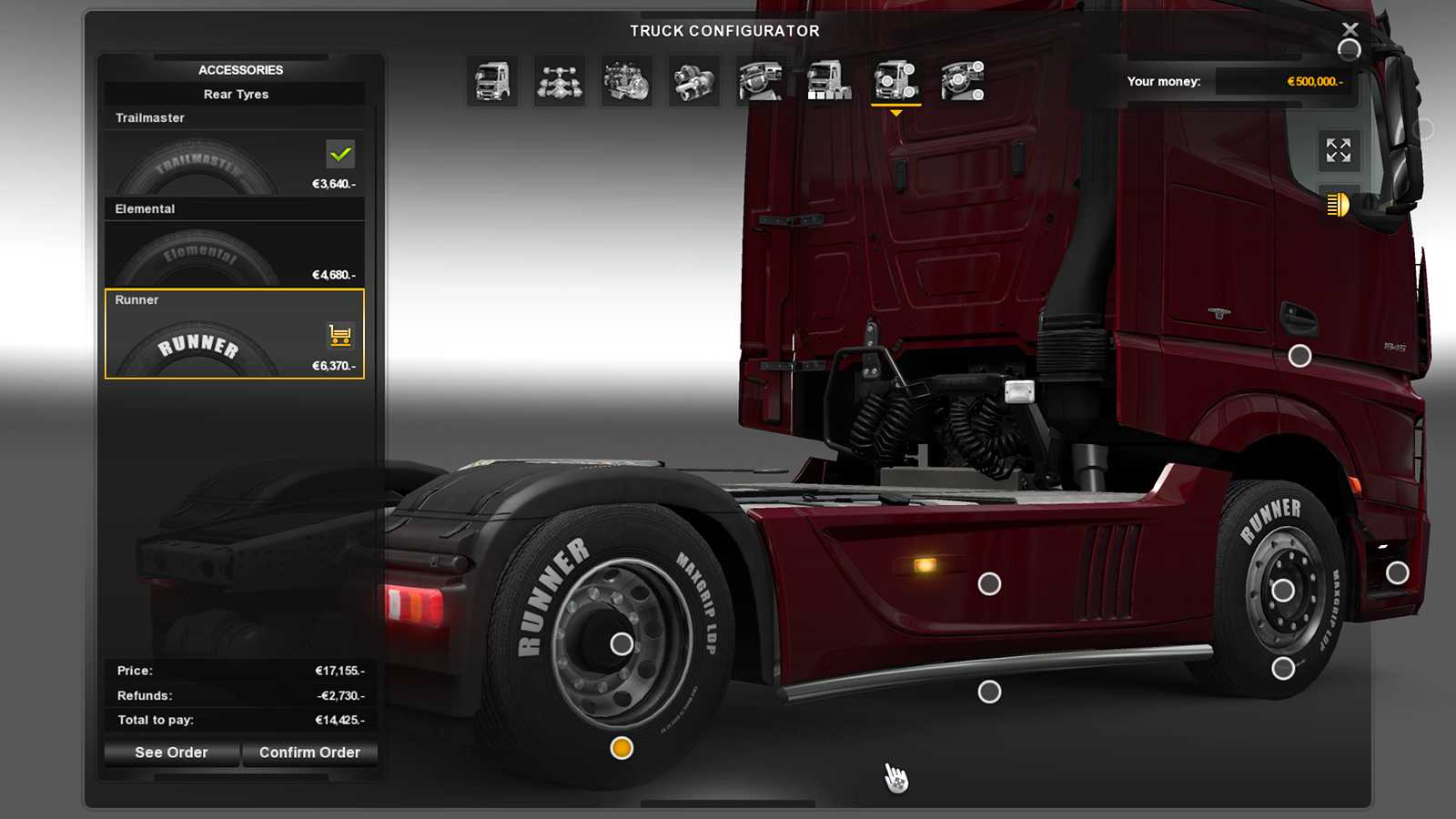 Разделение шин и дисков в отдельные объекты также связано с желанием разработчиков наделить их большим количеством свойств и функций, а в идеале ещё и получить лицензии реальных производителей шин, представьте картину, где вы можете «переобуть» свой грузовик в шины известных производителей — Michelin, Continental, Goodyear или Bridgestone и при этом данная резина будет не только выглядеть как настоящий прототип, но и обладать теми же физическими свойствами!