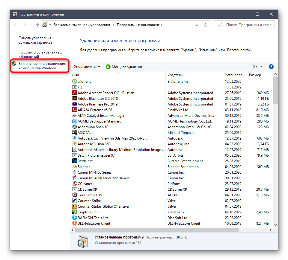 Способ 6: Включение компонентов Windows