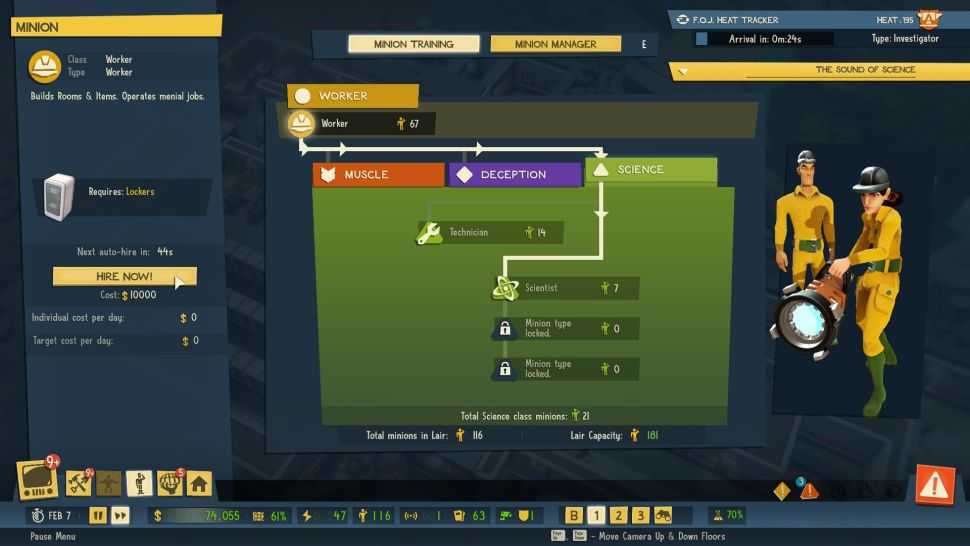 В конце концов вы откроете миссию кампании, в которой вас попросят разблокировать три новых типа миньонов. Это будет (вероятно, через несколько часов) после того, как вы разблокируете светскую львицу и наемника. Биолог — это миньон, которого вы ищете . Похищение одного из этих парней на Мировой арене, их допрос и создание соответствующего тренера откроют новые лабораторные станции, оборудование, которое приведет к исследованиям более высокого уровня.