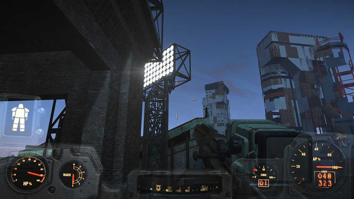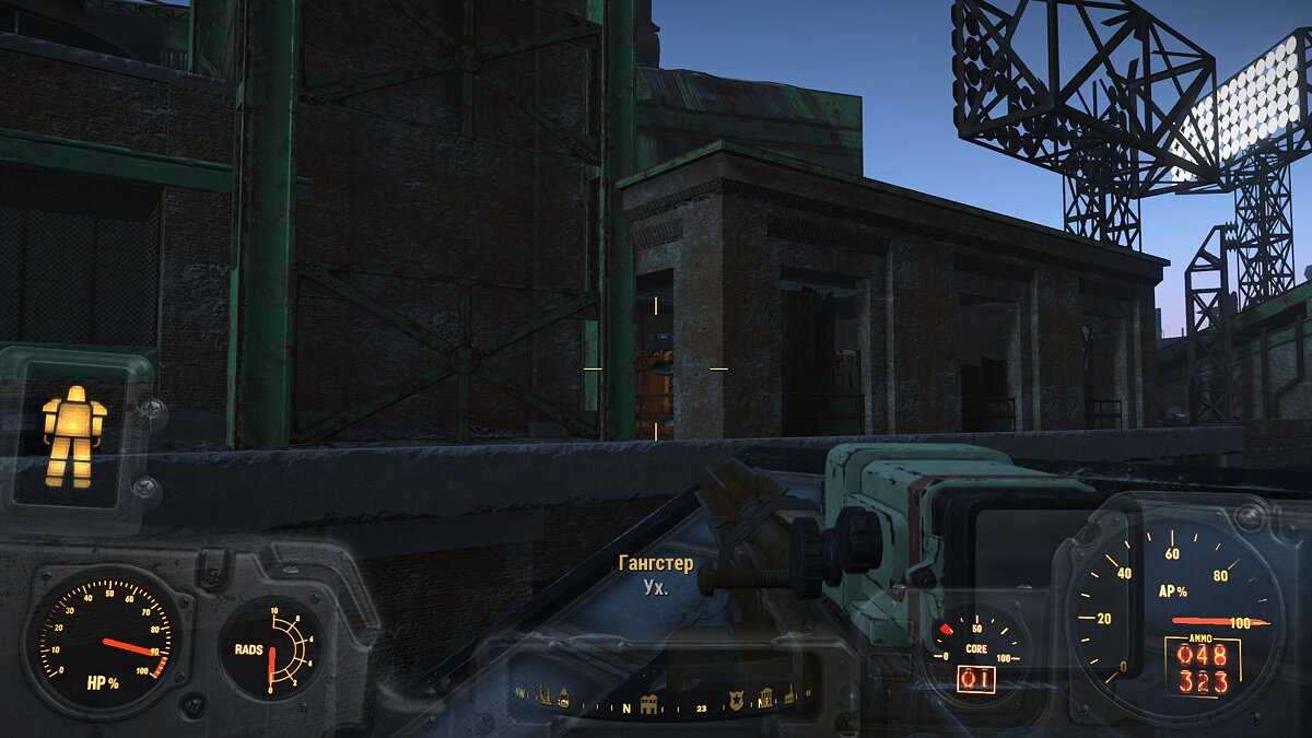 Начнем обзор со многим известной скрытой локации около Даймонд-Сити. Добраться туда можно и с помощью обычного прыжкового ранца, мод необязателен. Область находится с южной стороны от города. Если стоять лицом к входу в город, то надо двигаться по правой стороне стадиона, к полуразрушенному зданию, у которого есть мост между крышами: