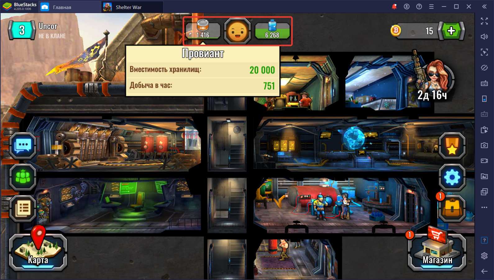 По мере завершения глав и миссий вы будете открывать новые комнаты и новые виды ресурсов. Все они понадобятся для дальнейшего улучшения убежища.