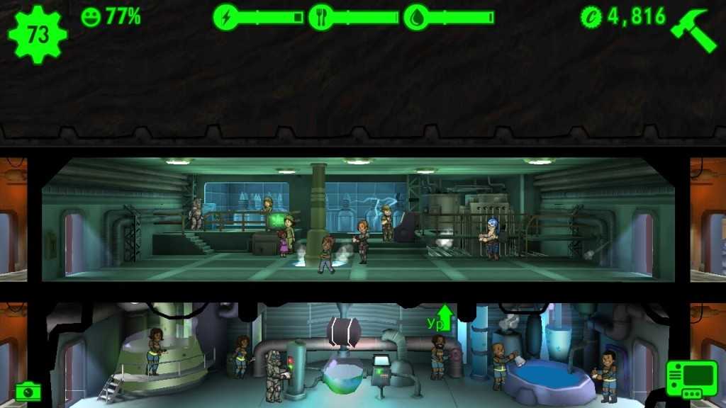 Как уже упоминалось выше, каждый житель убежища в Fallout Shelter имеет несколько показателей S.P.E.C.I.A.L., которые соответствуют . Правильное размещение работников в помещениях не только добавляет всем счастья, но и увеличивает эффективность производства. Усовершенствование производственных помещений увеличивает их производительность и размер, что позволяет получать больше ресурсов. Вы можете запланировать расширение заранее, размещая комнаты рядом друг с другом и объединяя помещения одного уровня (максимум можно объединить 3 комнаты). Расширенные производственные помещения также позволяют нанимать больше работников. Максимальное количество жителей в игре — 200 человек.