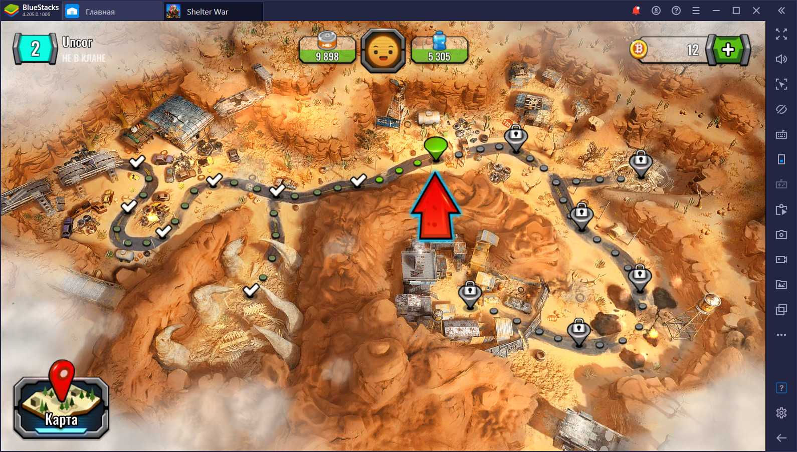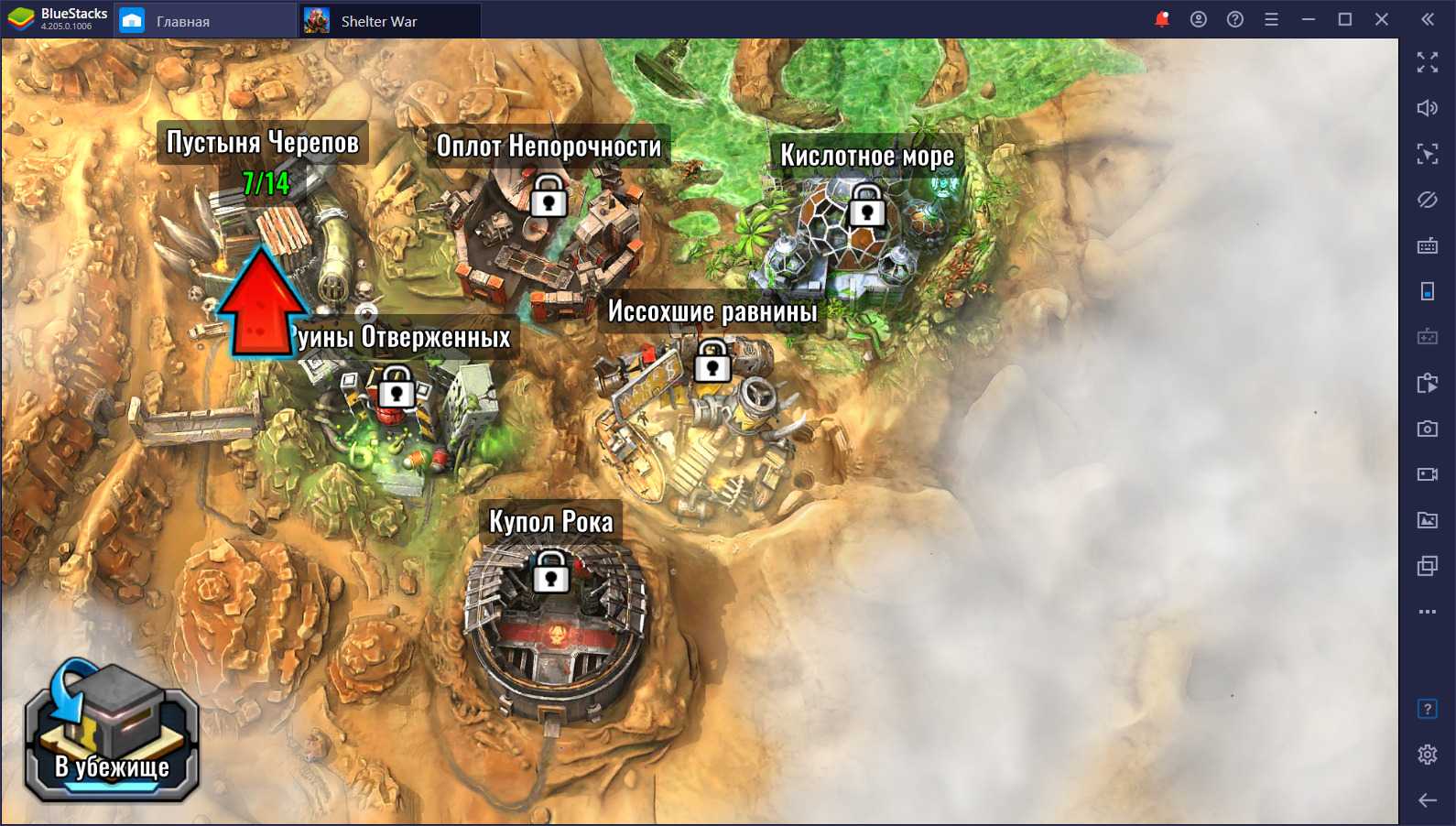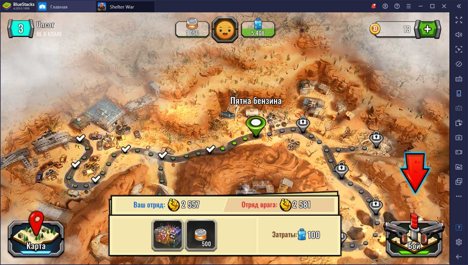 Перед вами открывается карта местности с опорными точками, на которых происходят сражения с противниками. Стоит отметить, что детализация локаций в Shelter War очень интересная. Можно долго разглядывать различные уголки карты и каждый раз подмечать что-то новое.