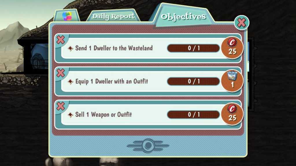 Выберите жителей с лучшей выносливостью, вооружите их, дайте им броню и Стимпаки с Антирадином, и отправьте их на поиски добычи. Не забывайте следить за их приключениями, всё что происходит с вашим исследователем отображается в виде текстовых сообщений с указанием времени. Персонажи не будут получать повреждения или поглощать излучение на обратном пути в хранилище, после того как вы их позовёте назад кнопкой «Recall».