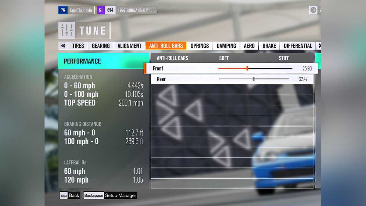Если вы хотите проверить себя при создании собственной настройки, настройте один элемент и проверьте свои изменения. Проверьте, что происходит с автомобилем, и только затем перейдите к следующей настройке. Хорошо отрегулированный автомобиль полезен во время гонки против других игроков или на высоком уровне сложности Drivatars.