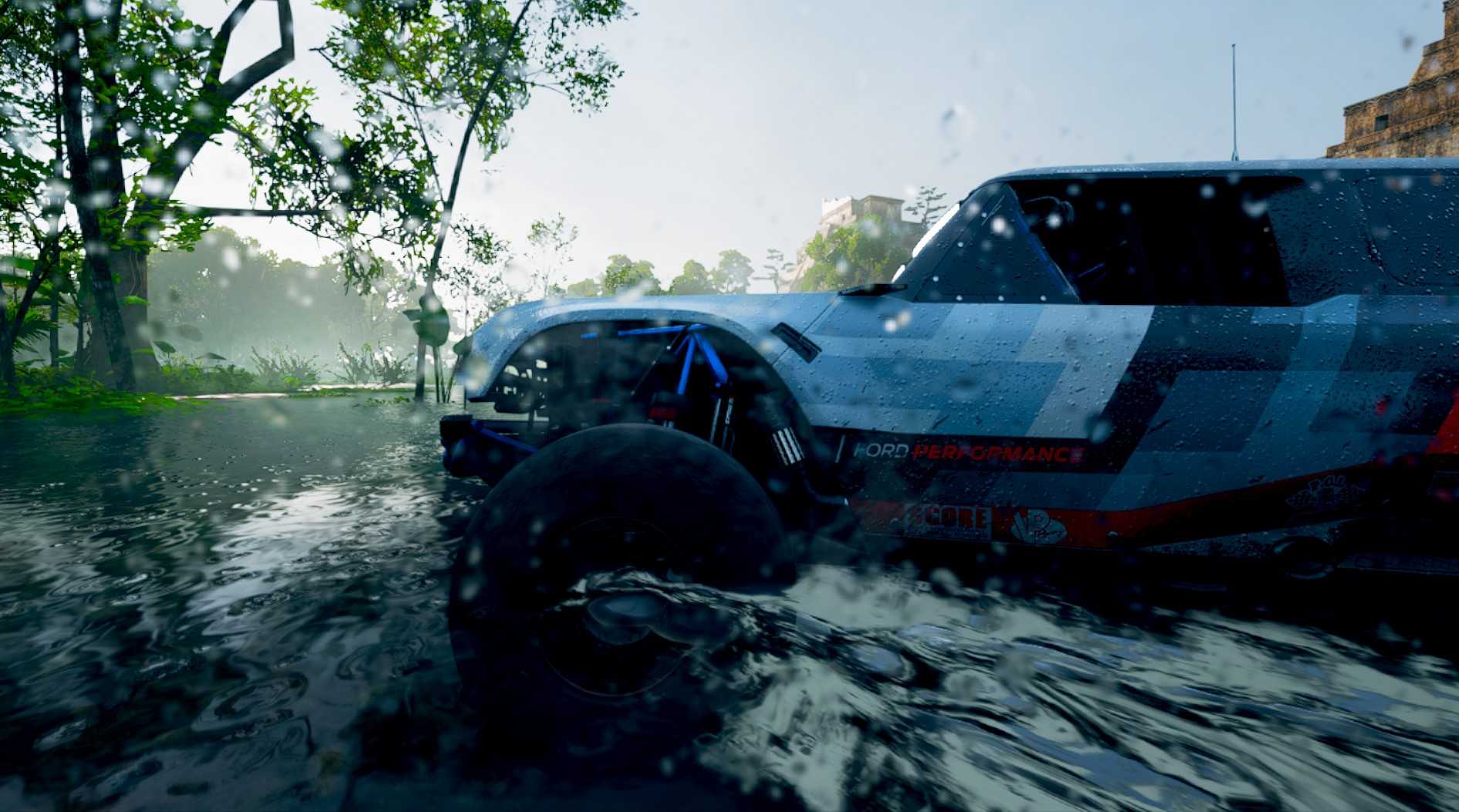 Грязь, вода, сажа, пыль — все это правдоподобно покрывает поверхность каждого автомобиля. Водяная рябь красиво анимируется при прохождении через реки и ручьи, а капли разбрызгиваются по всему капоту и бокам, когда идет дождь или намокает машина.