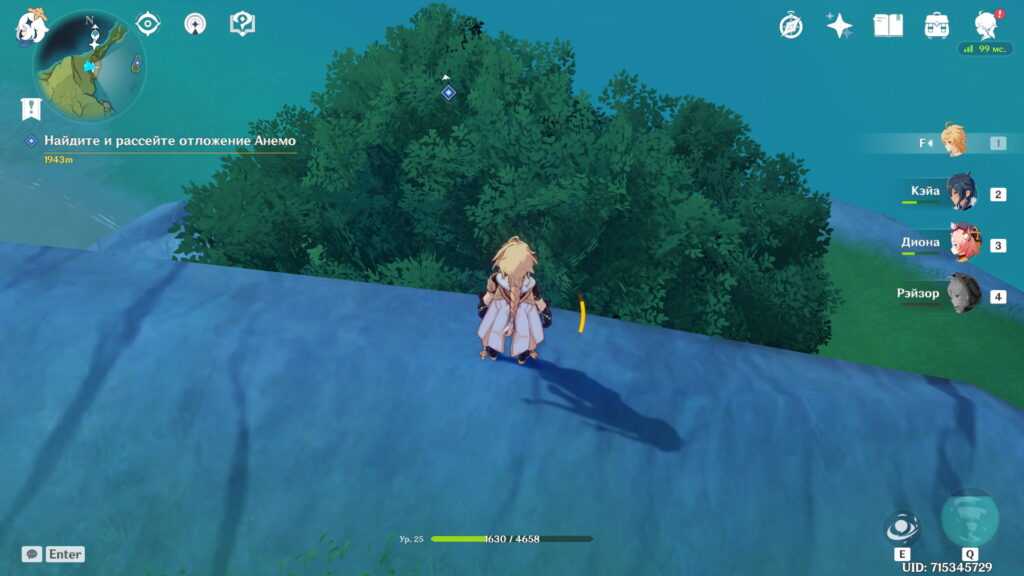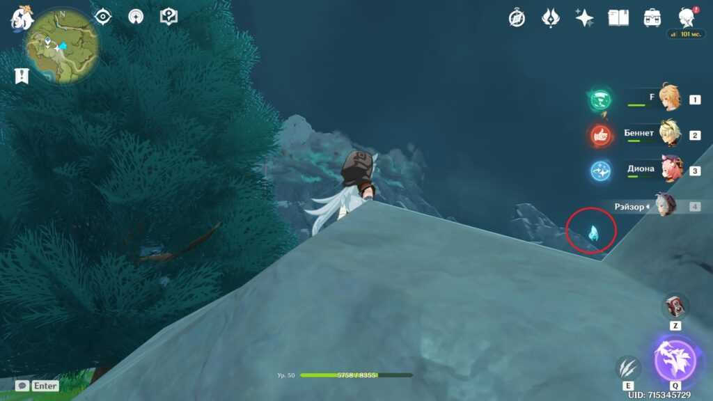 Снова используем Кейа, чтобы добраться до анемокула по льду.