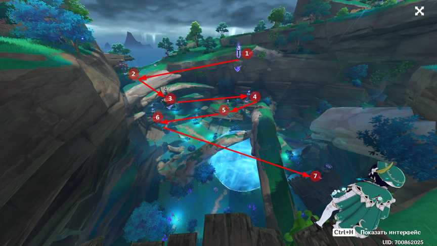 Идем к месту по знаку задания, игровая камера внимательно направляет нас на хилихурлов, потому что упоминания в задании и отметки на миникарте совершенно недостаточно, чтобы найти это сверхсложное место.
