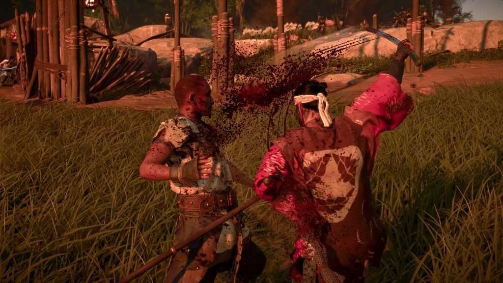 После начинается довольно стандартная боевка из современных экшен-игр. Можно блокировать, можно парировать, а немного прокачавшись — и перекатываться. У врагов есть неблокируемые атаки, копья и щиты — а еще их обычно прикрывают раздражающие лучники. Тут уж один взмах ничего не решает. Даже на средней сложности большая часть врагов — губки, особенно те, что пожирнее. Чтобы завалить мужика с алебардой, его нужно рубануть раз шесть, при этом ранами он не покроется и медленнее двигаться не станет. И это все не так уж плохо, но очень уж стандартно — ощущения от сражений не сильно отличаются от драк в какой-нибудь Shadow of Mordor.