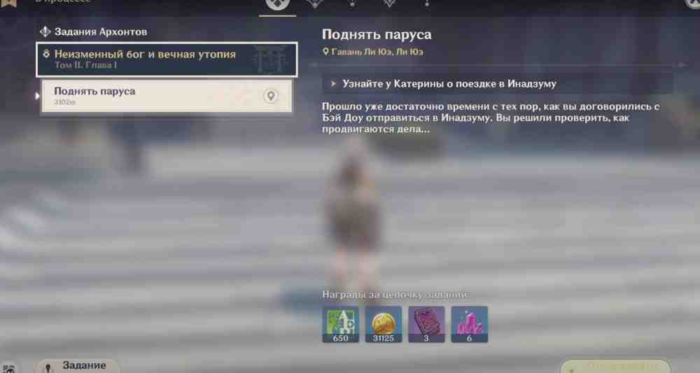 Чтобы попасть на острова нового региона, сперва вам нужно взять квест «Неизменный бог и вечная утопия». Он открывается всем игрокам, достигшим 32 ранга приключений и завершившим сюжетное задание «Осенний ветер, багряныее листья» в Genshin Impact. С этого момента вы можете посетить новый регион «Инадзума». По достижении 30 ранга приключений квест автоматически станет доступен в вашем журнале задач. Активируйте его и нажмите «отслеживать», после чего следуйте в Ли Юэ.