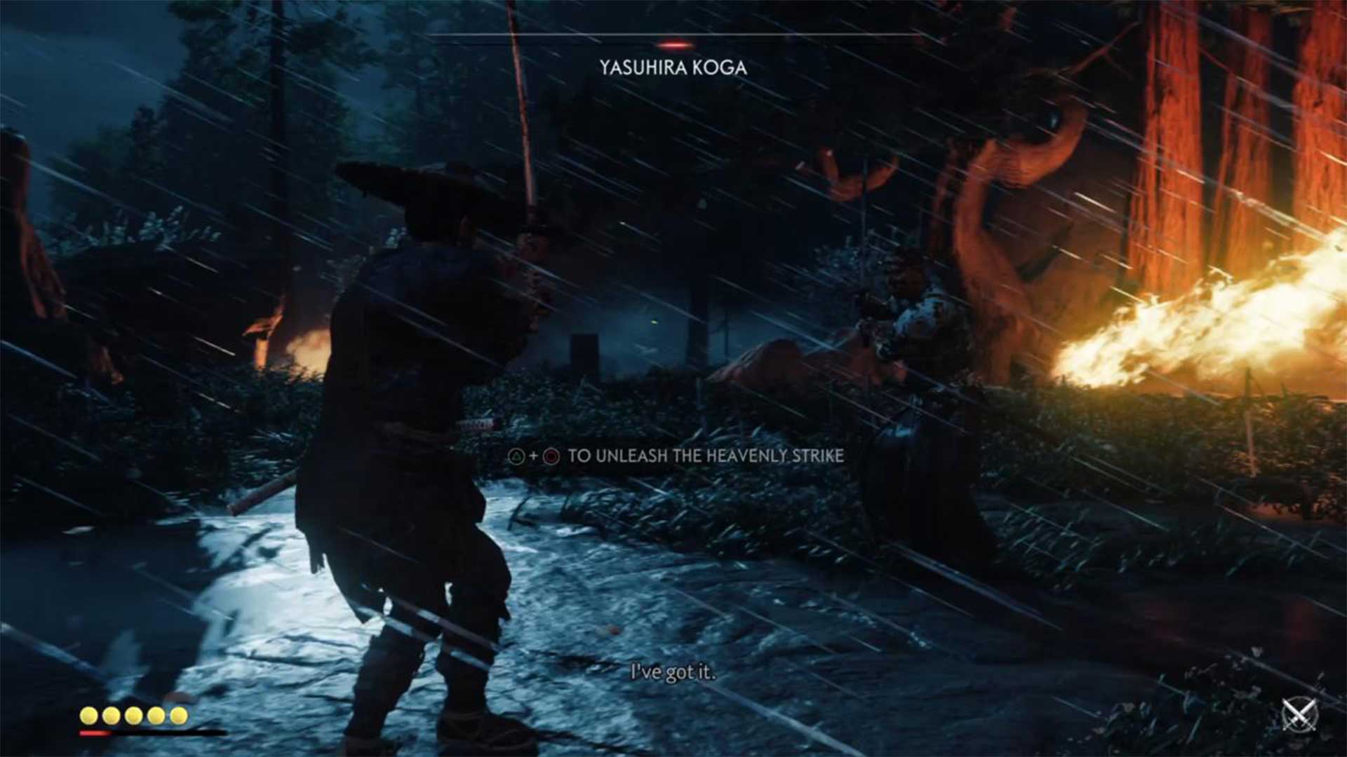 Вы можете нанести Рюдзо небольшой урон, проводя 2-3 атаки после каждого успешного парирования. Самый быстрый способ ослабить босса – идеальное парирование мечом и идеальные уклонения.
