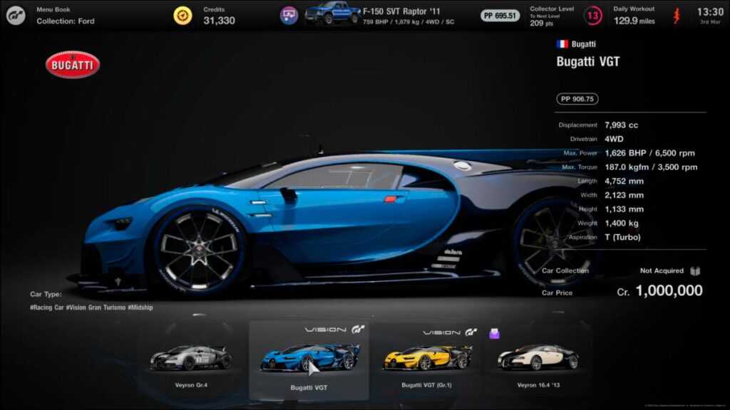 Вторая причина откладывать покупки заключается в том, что, продвигаясь по карьерной лестнице, вы обычно получаете транспортные средства, которые пригодятся для следующих глав. Поэтому редко возникает необходимость покупать что-то вне этого пула. Вам следует откладывать кредиты на покупку более дорогих транспортных средств, которых, к сожалению, в игре очень много — их можно, среди прочего супер и гиперкари, концепты Vision Gran Turismo или спортивные машины из категории Gr.1-4. Они могут пригодиться вам для дальнейшего пополнения вашей коллекции и в многопользовательском режиме.