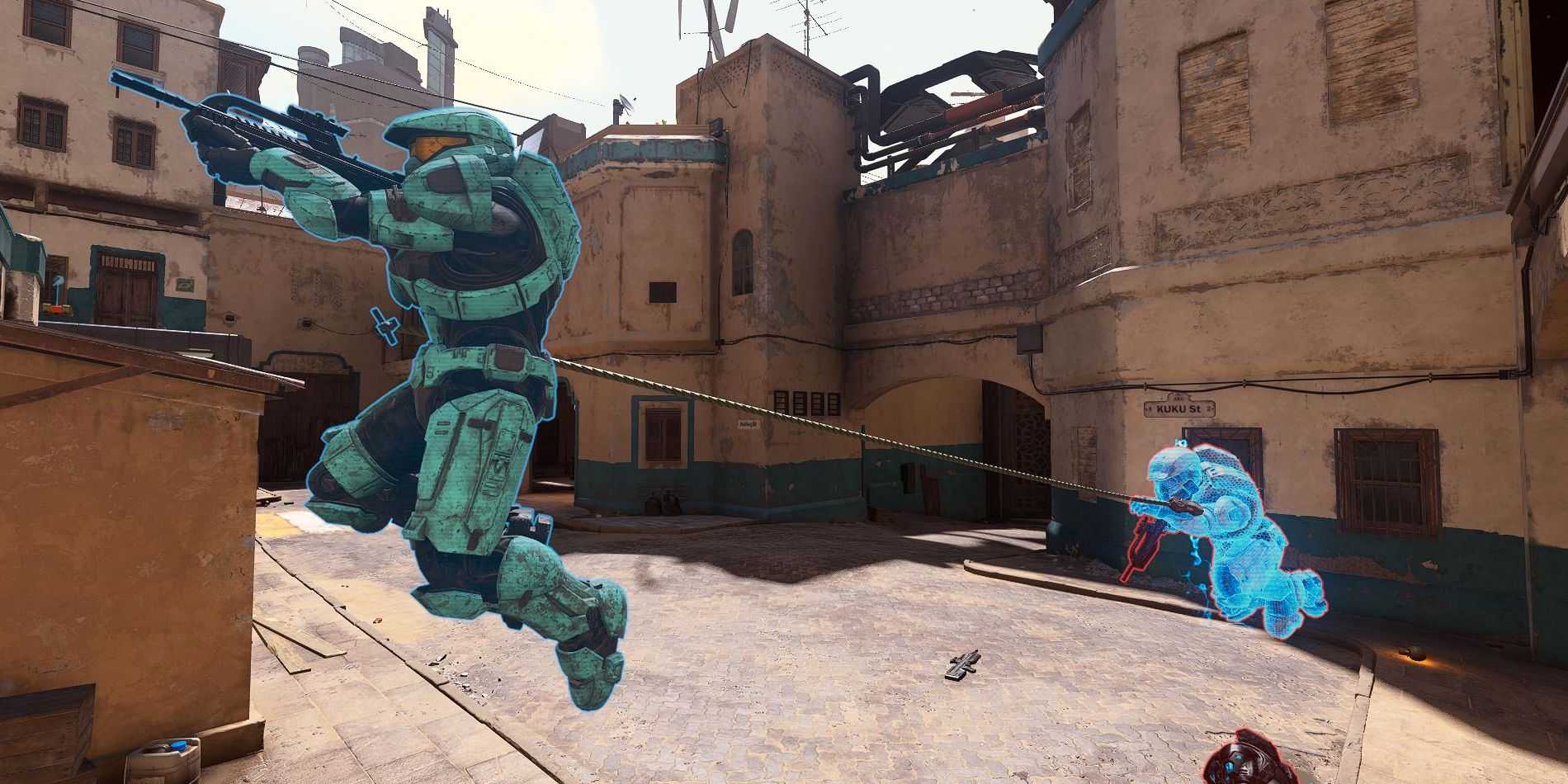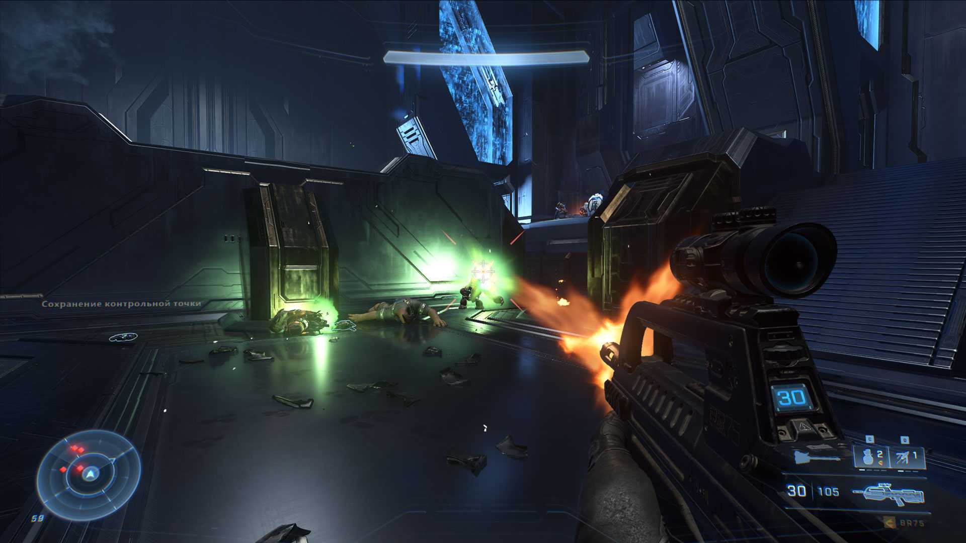 Еще один довольно банальный трюк, который можно провернуть в Halo Infinite с крюком-кошкой – притянуться к врагу и ударить прикладом. Работает безотказно для того, чтобы дезориентировать врага, особенно если до захвата он вас не увидел. Но здесь хотелось бы напомнить, что урон от ближнего боя зависит от типа оружия и если оно оснащено клинком, как, например, острога, то наносит больше вреда. Лучше всего работает связка крюк-кошка и удар вблизи в том случае, если у вас в руках энергетический меч.