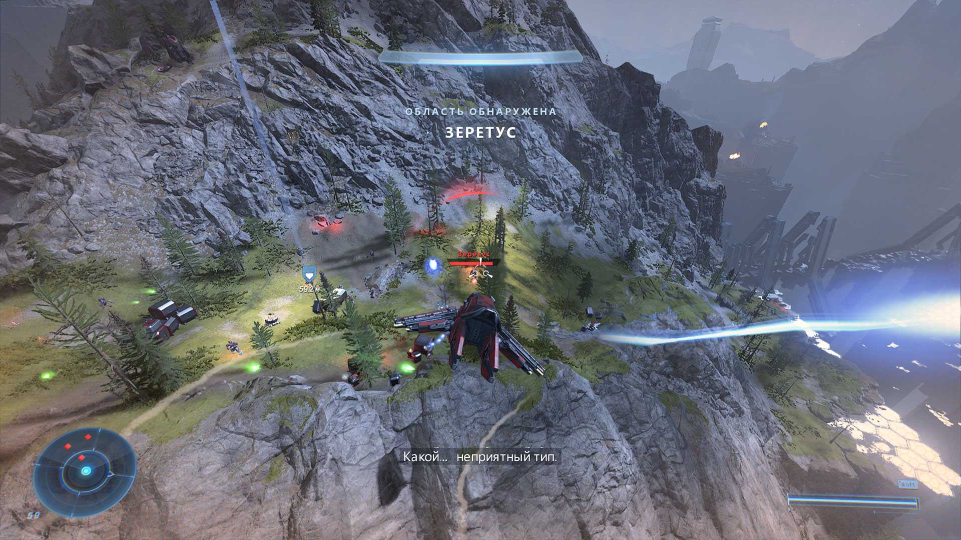 Если не вдаваться в перипетии событий вселенной Halo, то сюжет у Infinite очень простой: злодей хочет уничтожить человечество с помощью огромной конструкции в виде космического кольца, построенного древней высокоразвитой расой предтечей. Если чуть сложнее, то в самом начале бессменный герой игры Мастер Чиф терпит поражение и предводитель Изгнанников Атриокс выкидывает его в открытый космос. Там спустя какое-то время пилот десантного корабля находит Чифа и вместе они прилетают на «Зету» — ту самую космическую установку-кольцо, на внутренней стороне которой есть пригодная для жизни экосистема, то есть леса, горы и реки.
