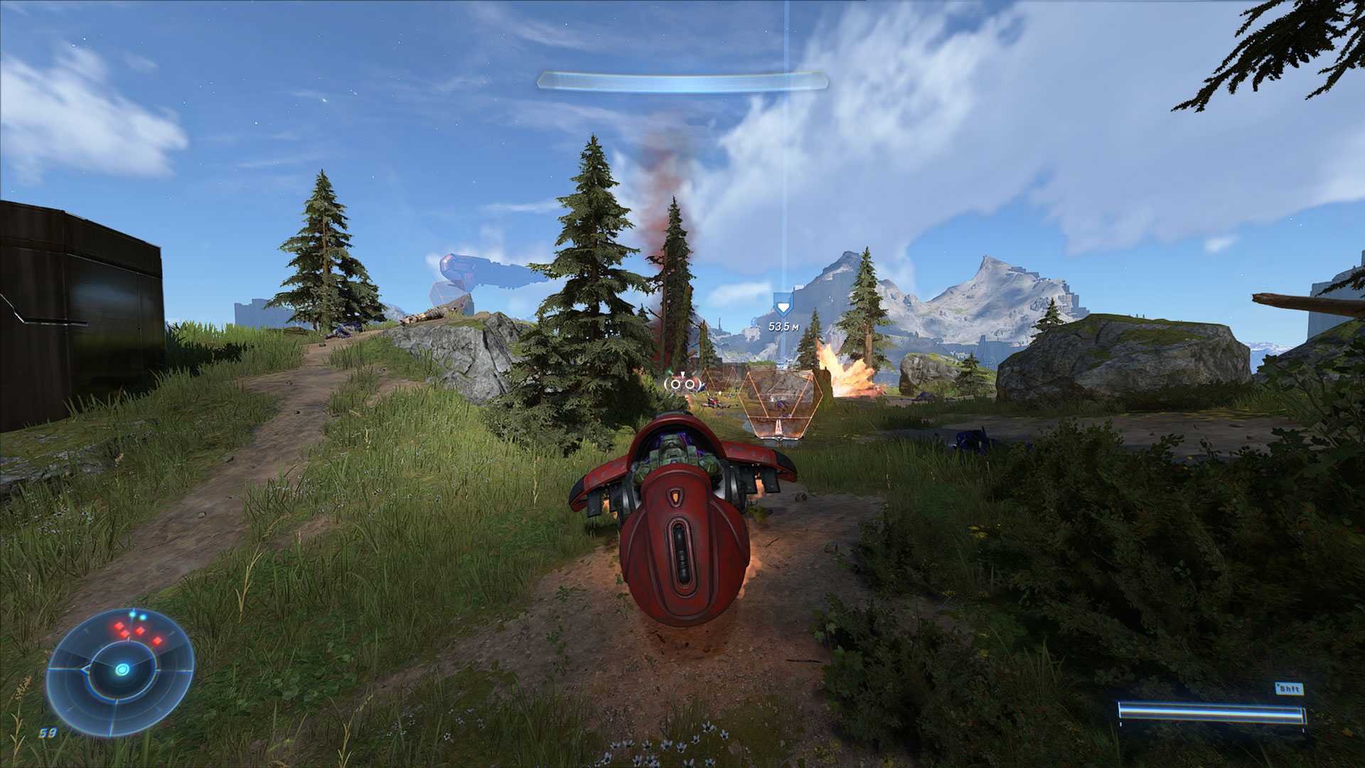 А самое печальное, что Halo Infinite никак не настаивает на креативе. То есть вы можете просто сесть в небольшой инопланетный глайдер «Призрак» и спокойно и методично зачищать на нём все точки. Из-за больших открытых пространств враг не может быстро сократить дистанцию, чтобы незаметно прилепить гранату или выбить вас из седла. Уравнение Halo хорошо работает в небольших продуманных комнатах, но стоит загнать игру в узкий коридор или большие пространства — динамика сразу рушится.