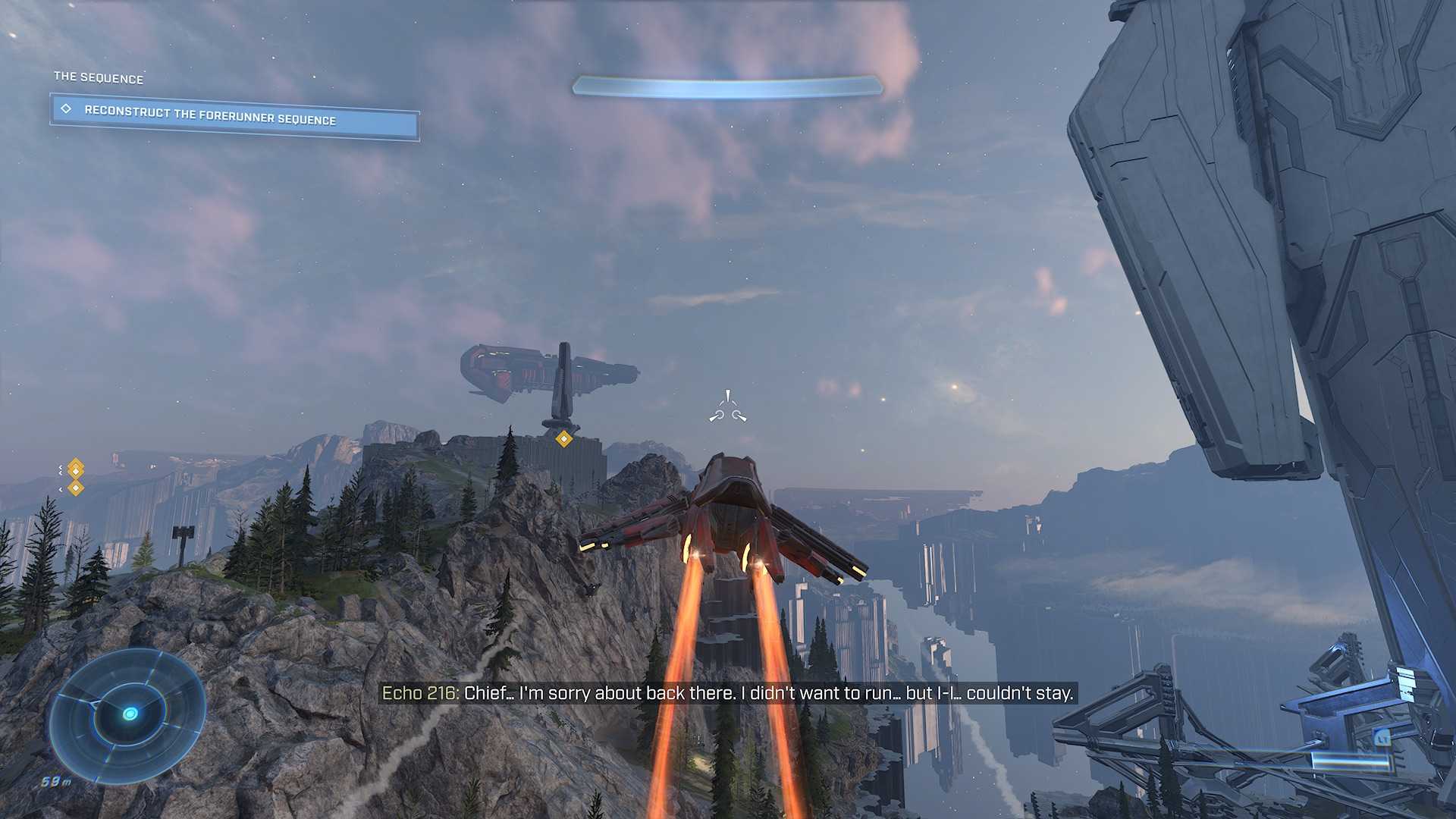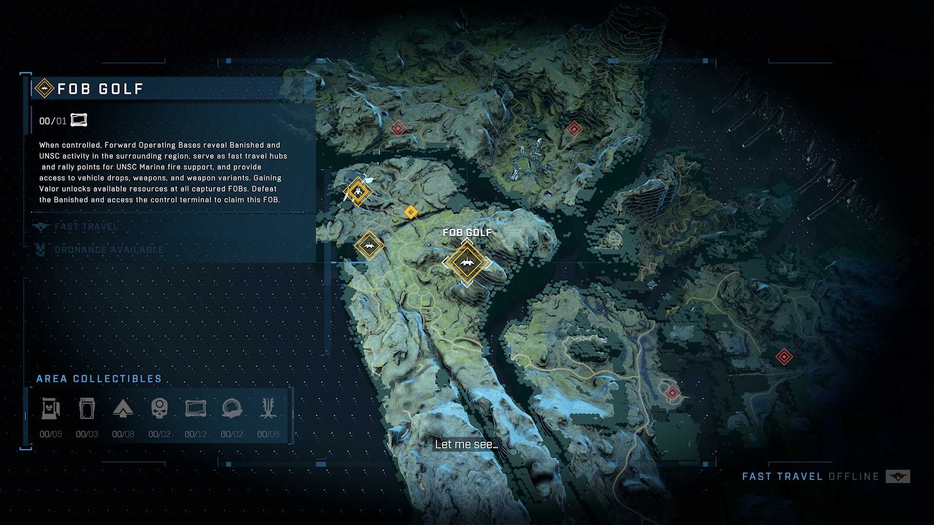 У вас нет какой-то основной базы или домашнего региона как такового: по сюжету, силы человечества на кольце Zeta Halo очень малы и разрозненны. Поэтому вы кочуете между маленькими передовыми базами, служащими как точки быстрого перемещения, плацдарм для перевооружения персонажа и вызова транспорта, а также рекрутинга солдат в очередной завоевательный поход по открытому миру.