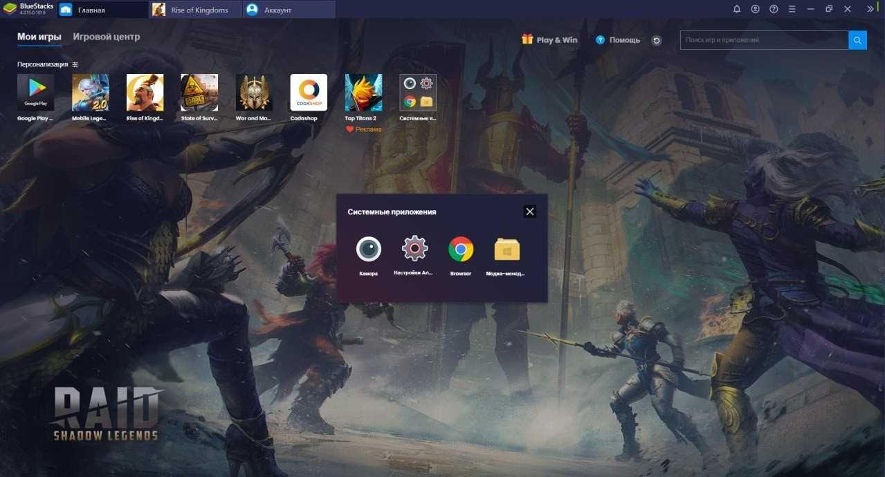 - На главном экране BlueStacks, в разделе “Мои игры” откройте папку “Системные приложения” и перейдите в “Настройки Android”.