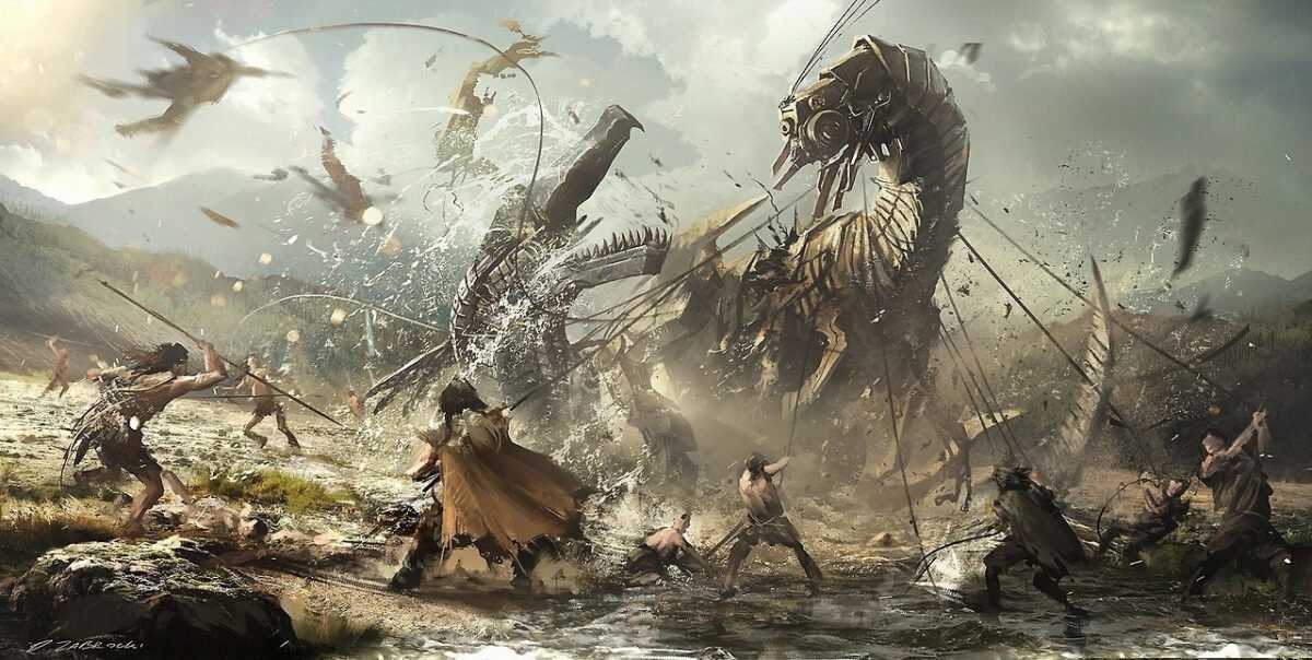 Тогда студия решила обратиться к первобытной эпохе, когда человек не занимал доминирующее положение в природе, а один из разработчиков предложил и вовсе заселить мир игры механическими динозаврами. К идее отнеслись без энтузиазма, но других подходящих предложений попросту не было. А вскоре первые концепт-арты показали, что роботизированные животные смотрятся органично, — и в итоге идею начали развивать.