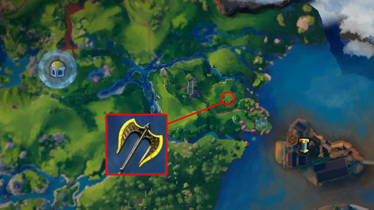 Удивительно, но это феноменальное оружие, как и Departed Shade, невероятно легко получить! Просто отправляйтесь в Охраняемый сундук у восточного побережья Долины Вечной Весны, через воду от Обсерватории в Clashing Rocks. Он также находится рядом с еще одним эпическим сундуком и амброзией, которую вы можете подобрать по пути. Взгляните ниже, чтобы узнать, где именно найти Запрещенных Лабрис: