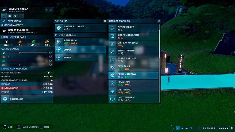 Как только это будет сделано, вам нужно добавить внутренние модули, такие как благотворительные коробки или аркады. Действует то же самое правило. Просматривайте модули, пока не найдете тот, который больше всего увеличивает вашу прибыль. Если полоса прибыли становится красной, это означает, что она, по прогнозам, снизится, если вы добавите этот модуль. Вам не нужно заполнять каждый пустой слот модуля, если после добавления пары каждый дополнительный модуль уменьшит вашу прибыль.