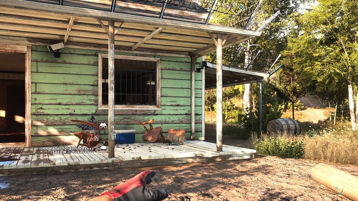 Это последняя миссия в регионе. Ты должен пойти в бункер Иоанна и спасти Гудзона. Вы можете использовать быстрое путешествие. Для начала вам нужно добраться до дома — когда вы откроете дверь, то увидите двух сильно вооруженных сектантов, убейте и возьмите их оружие. Затем идите в укрытие и следуйте по указателю — по пути вы встретите нескольких врагов.