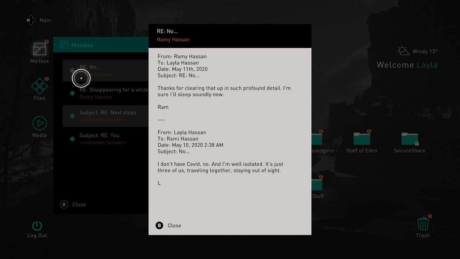 Сюжетные линии в современности в каждой из частей Assassins Creed всегда хранили в себе множество отсылок на реальный мир, начиная как сценарием, – чего стоят только акцент на календаре майя и 2012 году в оригинальной трилогии за Дезмонда, – и заканчивая намного более изящными пасхалками. Самая очевидная, но в тоже время злободневная пасхалка в Valhalla на реальный мир – упоминание пандемии коронавируса, о чем можно узнать, заглянув в личные сообщения Лейлы Хасан на компьютере. Жители виртуальной вселенной не избежали напасти, негодуют из-за сложившейся ситуации и стараются придерживаться самоизоляции.
