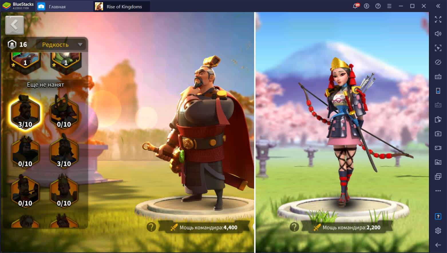 Методом проб и ошибок мы определили 4 возможных варианта совмещения командиров в Rise of Kingdoms. Все они основаны на нашей схеме специализаций и на синергии навыков полководцев.