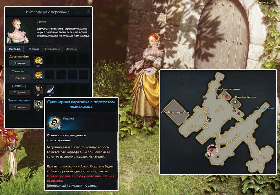 Исходный материал, «Сувенирная картошка с портретом незнакомца» – награда у Селины в Леонхольде за превознесение. Прокачайте с ней репутацию, получите награду и просто кликните по ней правой кнопкой мыши, добавив блюдо в атлас.